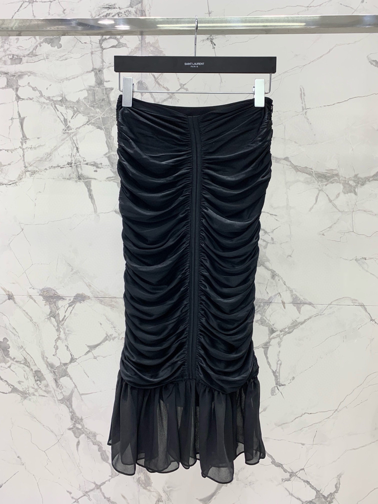 SAINT LAURENT Pleated Acetate Knit Midi Skirt