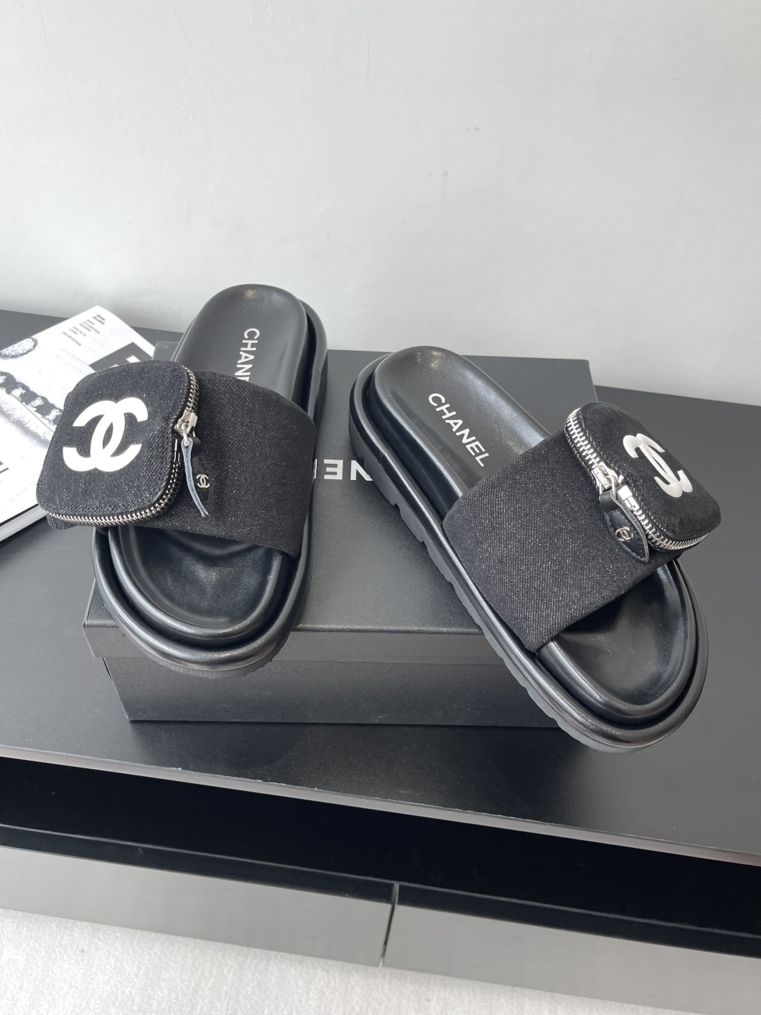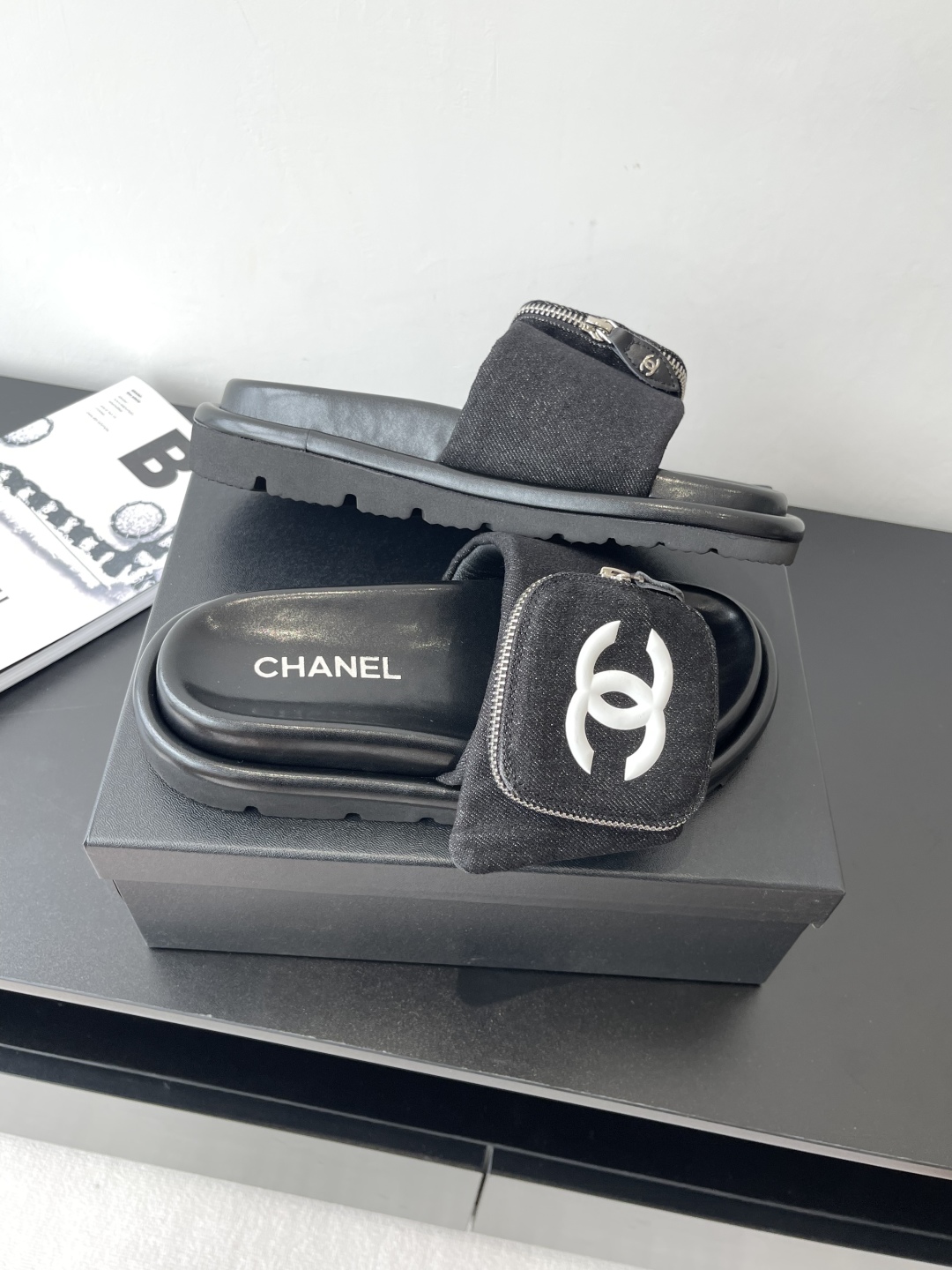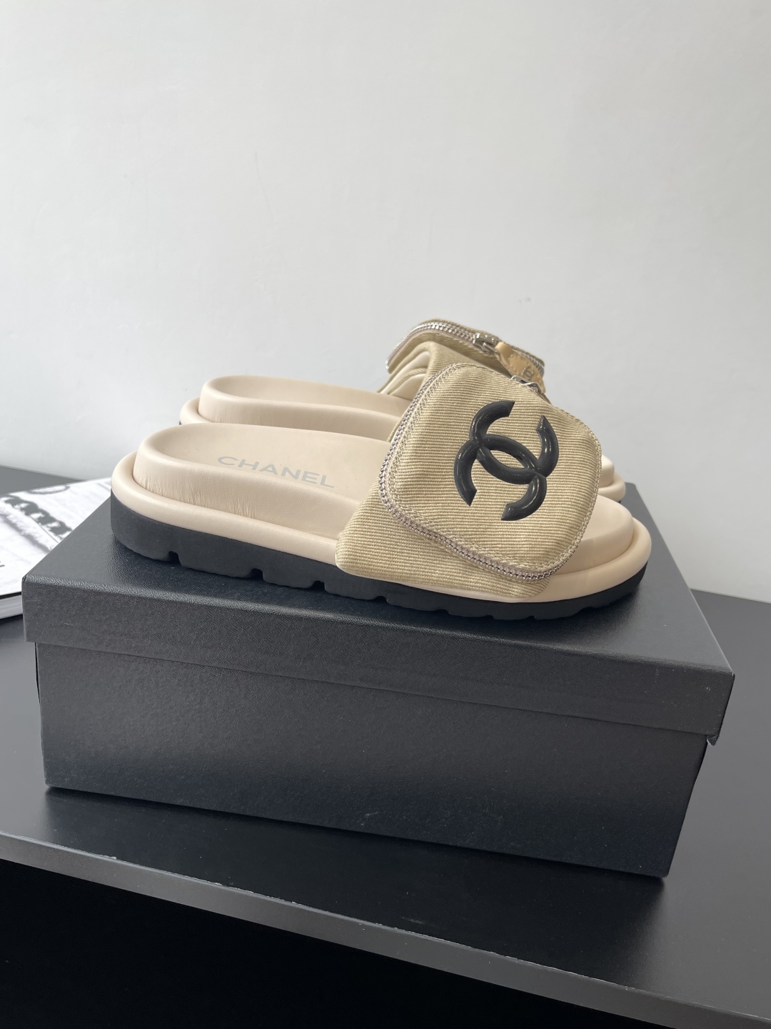 Crafted from custom-woven denim and designed with a super lightweight molded foam sole, these CHANEL slides combine fashion and functionality in the most effortless way.