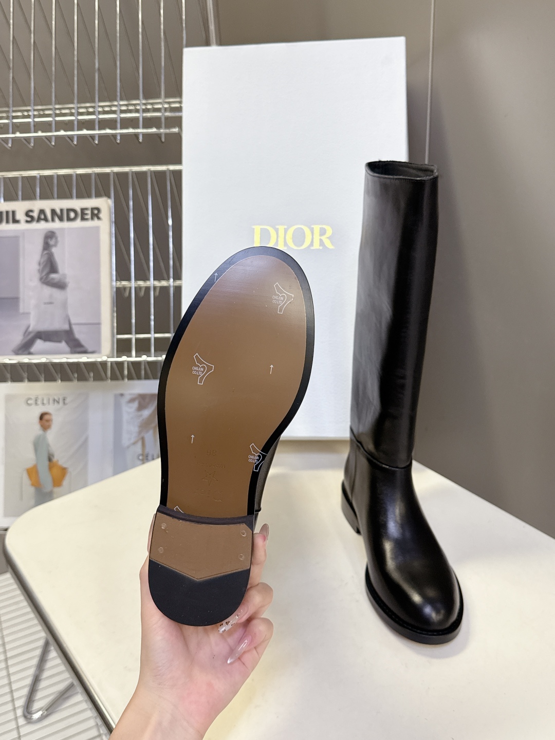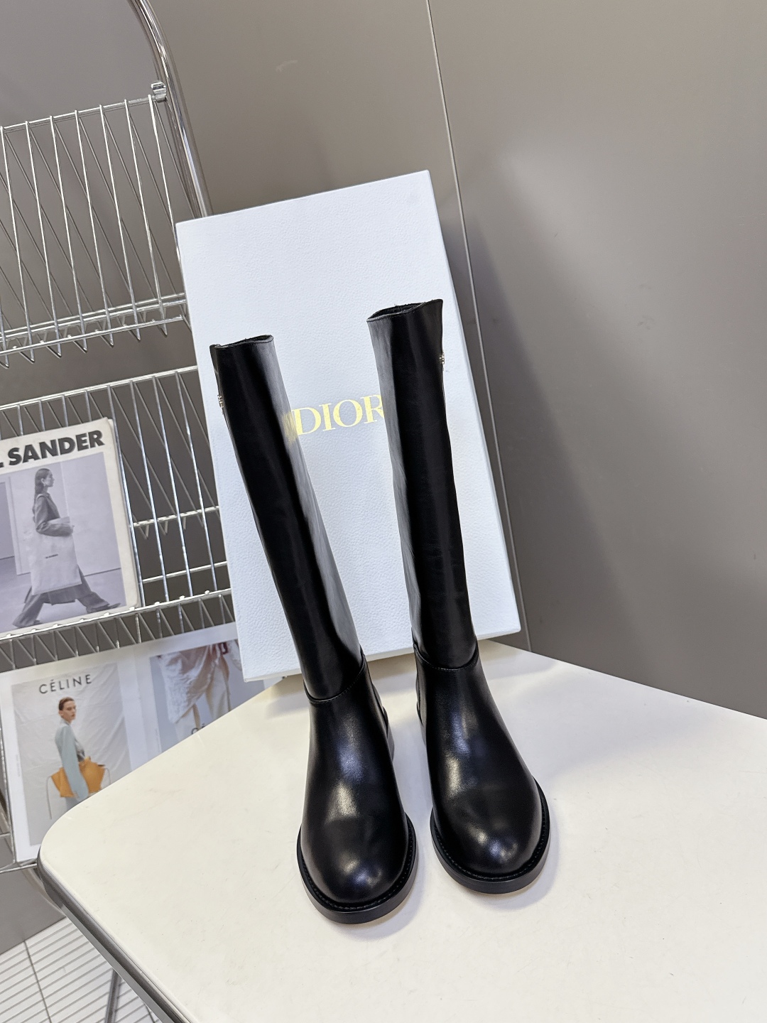 The D-Town boot is a style with a timeless look. The tubular silhouette crafted in black supple calfskin is embellished with a gold-finish metal Christian Dior Paris signature on the side. The refined shoe will elevate any look of the season.
