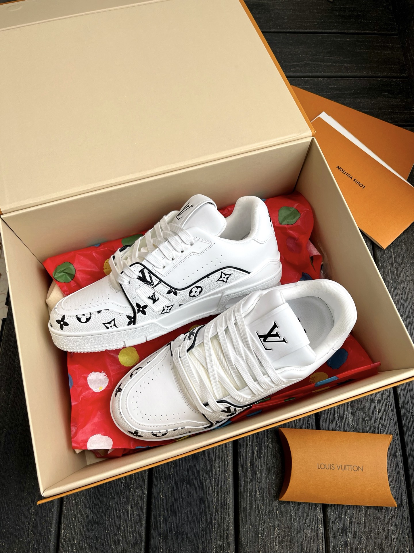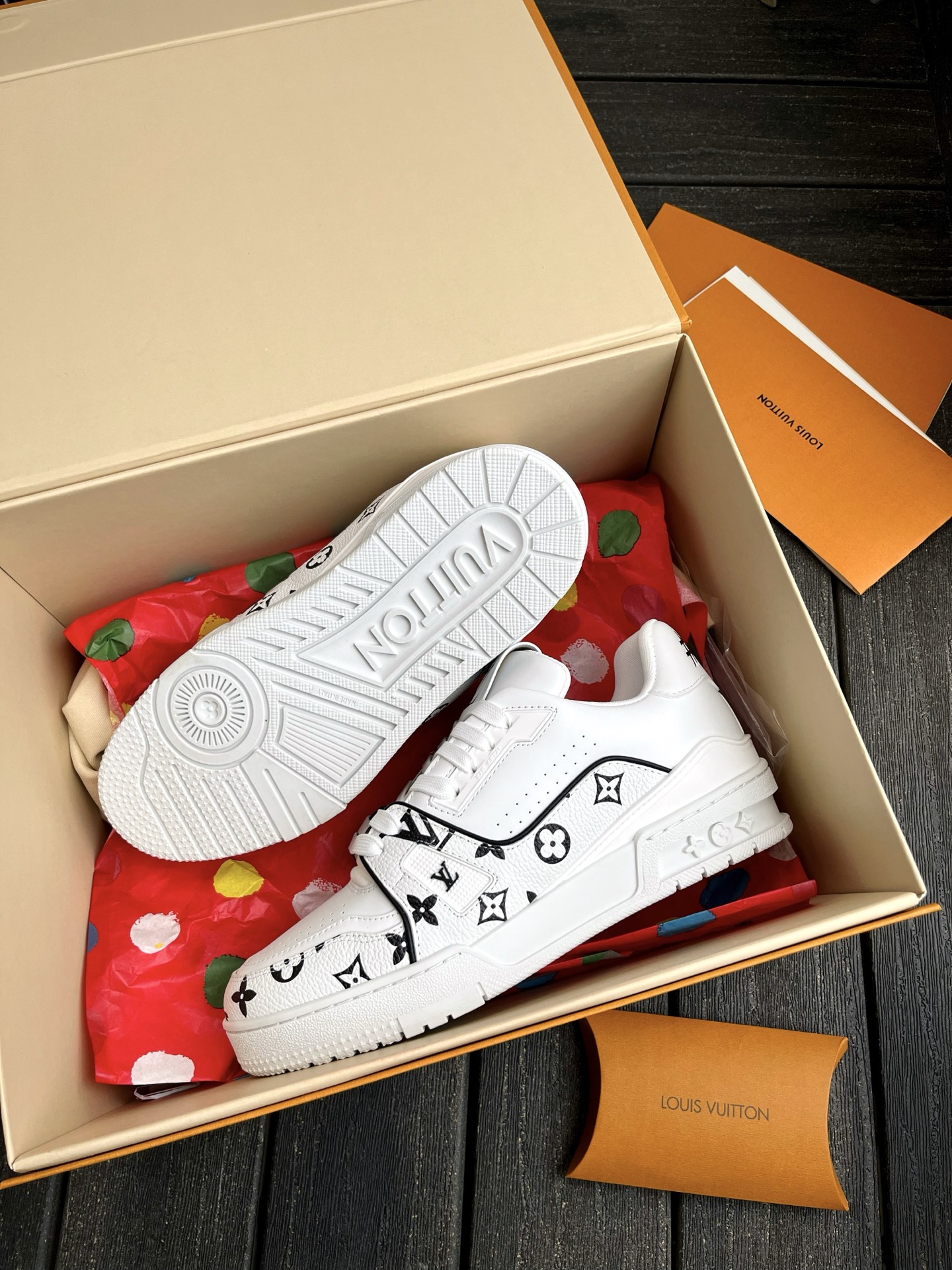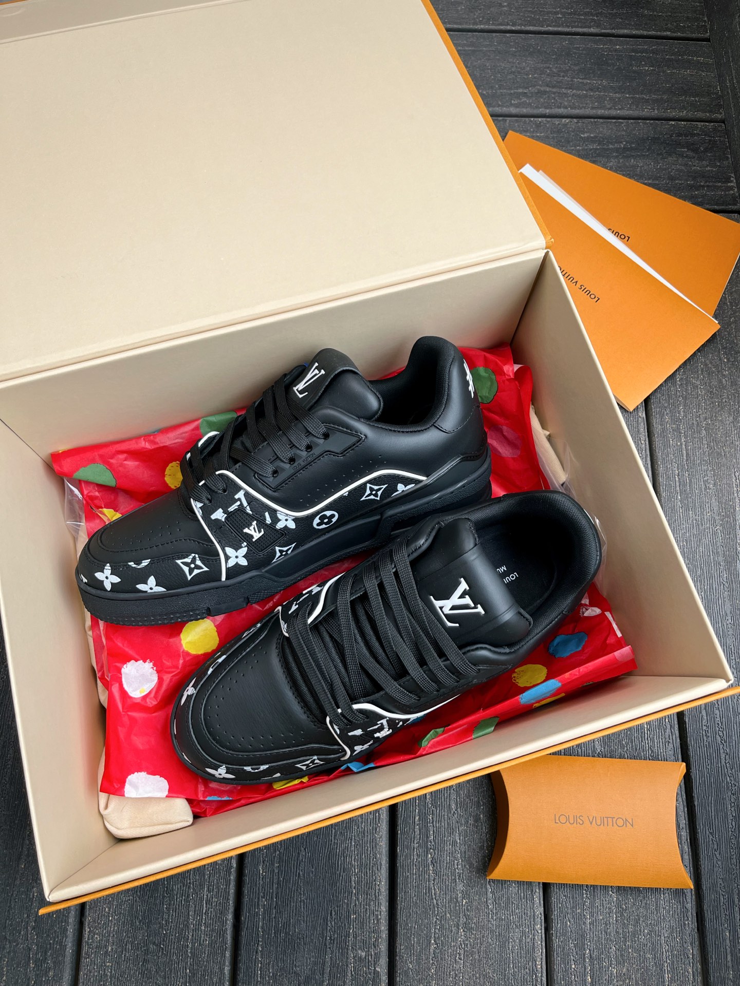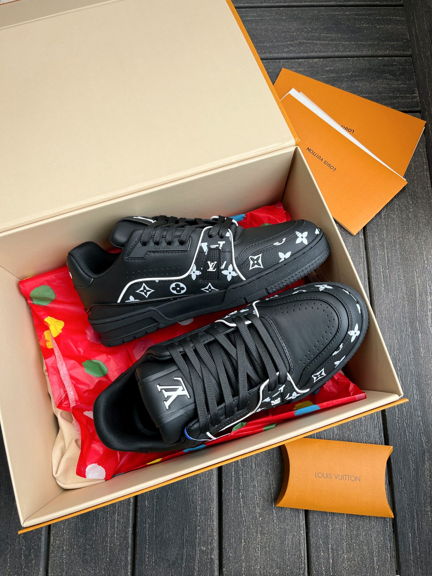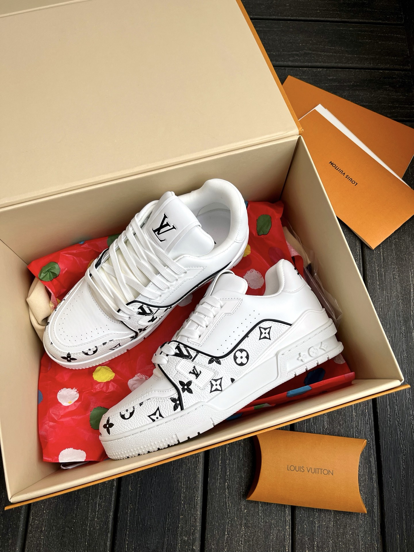 This pair of LV Trainer sneakers features a stunning Oreo colorway, combining street style with luxury. The upper is made of high-quality calfskin, offering a premium feel. The shoe shape is flattering, slightly elongated, and looks great on the feet.
