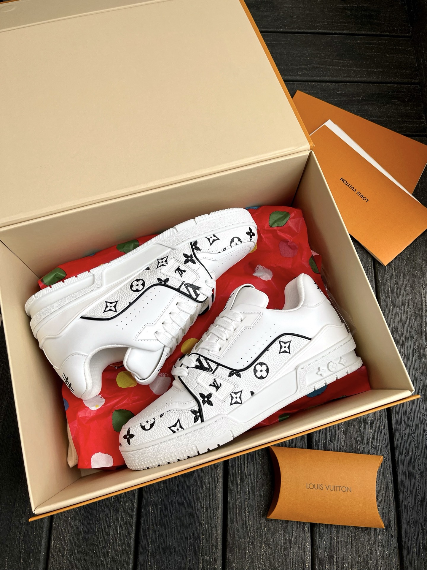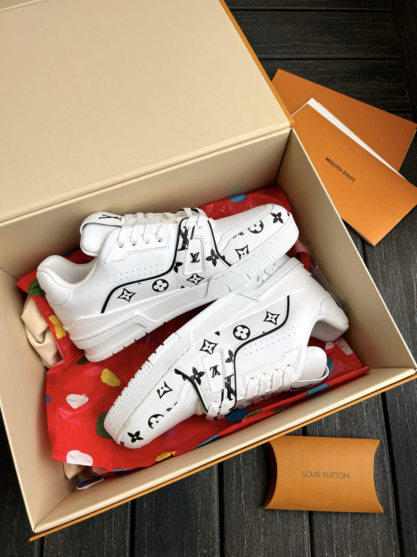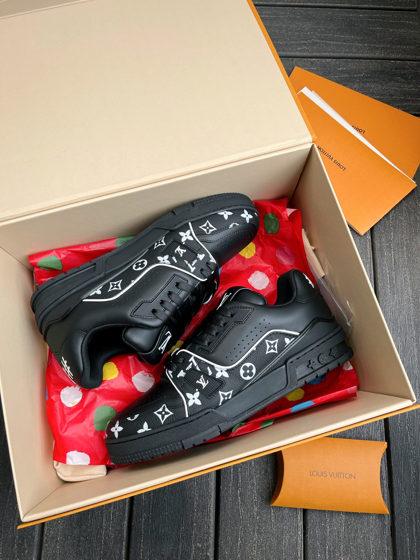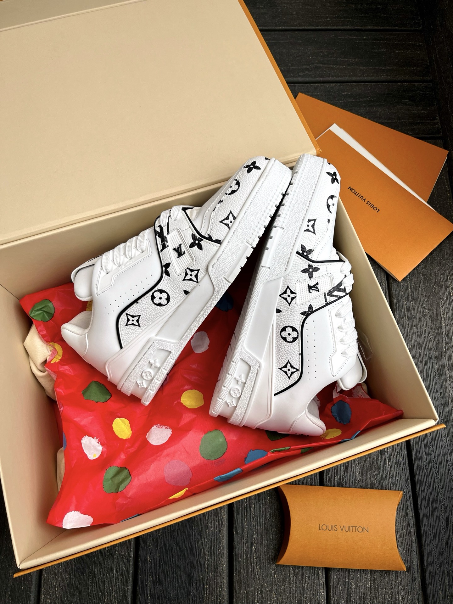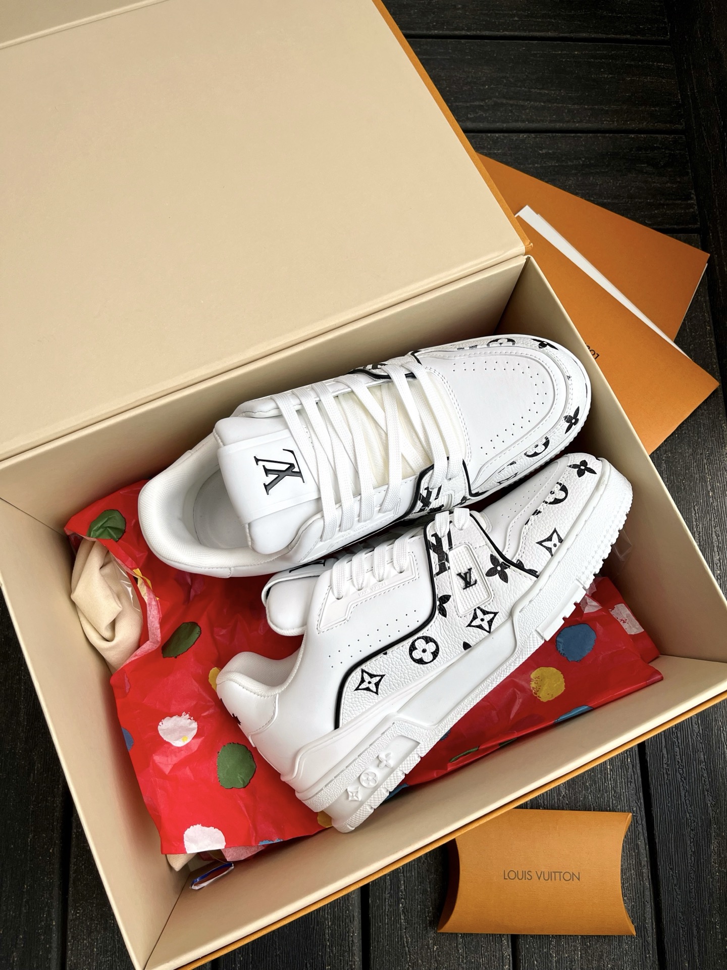 This pair of LV Trainer sneakers features a stunning Oreo colorway, combining street style with luxury. The upper is made of high-quality calfskin, offering a premium feel. The shoe shape is flattering, slightly elongated, and looks great on the feet.