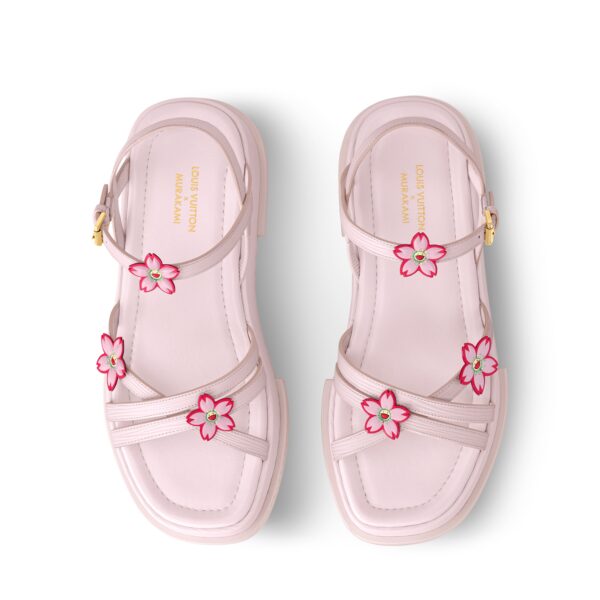 The Maya flatform sandal makes a spirited statement as part of the re-edition of the coveted cross-category Louis Vuitton x Takashi Murakami collection. Crafted from textured Epi grained calf leather in a fresh shade of pink, the proportions of the chunky platform are offset by the upper’s slim straps, which are embellished with vibrant Cherry Blossom patches in the Japanese artist’s vernacular playful style.