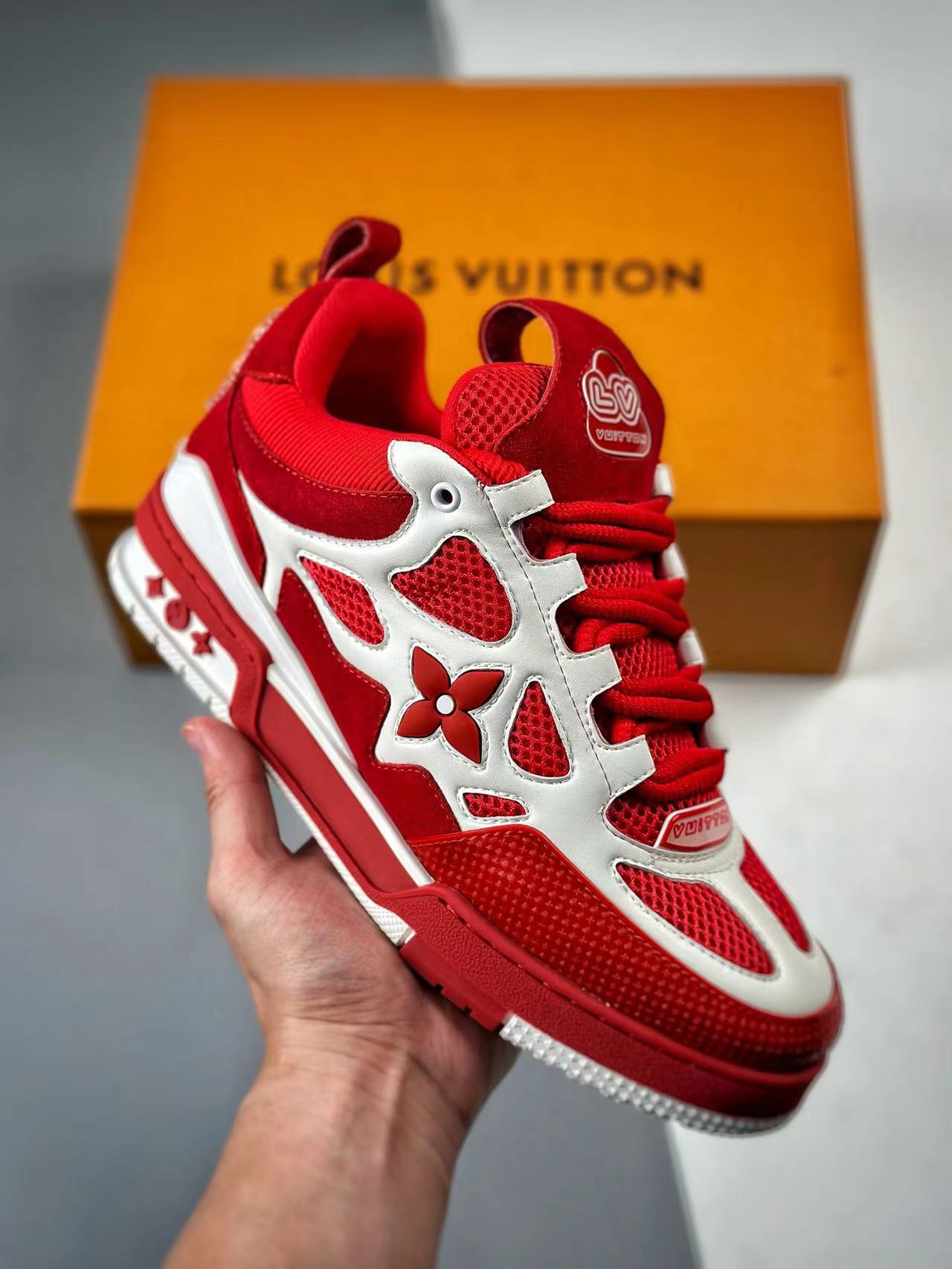 The LV Skate sneaker references a Nineties-inspired design first seen at Louis Vuitton’s Fall-Winter 2022 men’s show. Its elaborate, bicolor upper with Monogram Flower detailing combines technical mesh, calf leather and suede. This model is notable for its padded collar, technical double laces and bicolor rubber outsole decorated with Monogram Flowers.