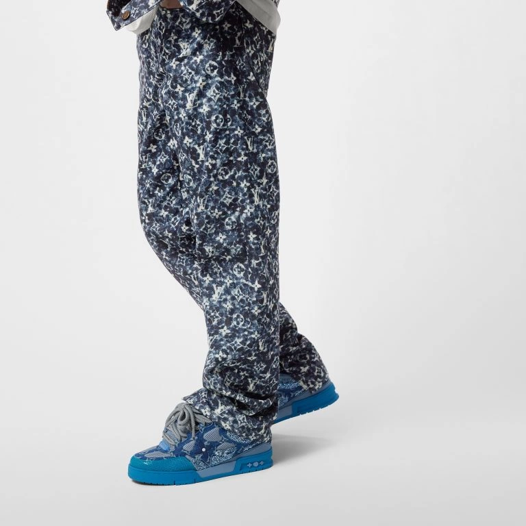 This exceptional edition of the LV Skate sneaker combines Monogram denim with sparkling Swarovski™ crystals and technical mesh. This Nineties-inspired design is characterized by its padded collar and tongue, which features an LV since 54 logo, referring to 1854, when Louis Vuitton was founded. Technical double laces and a bicolor rubber outsole complete this model.
