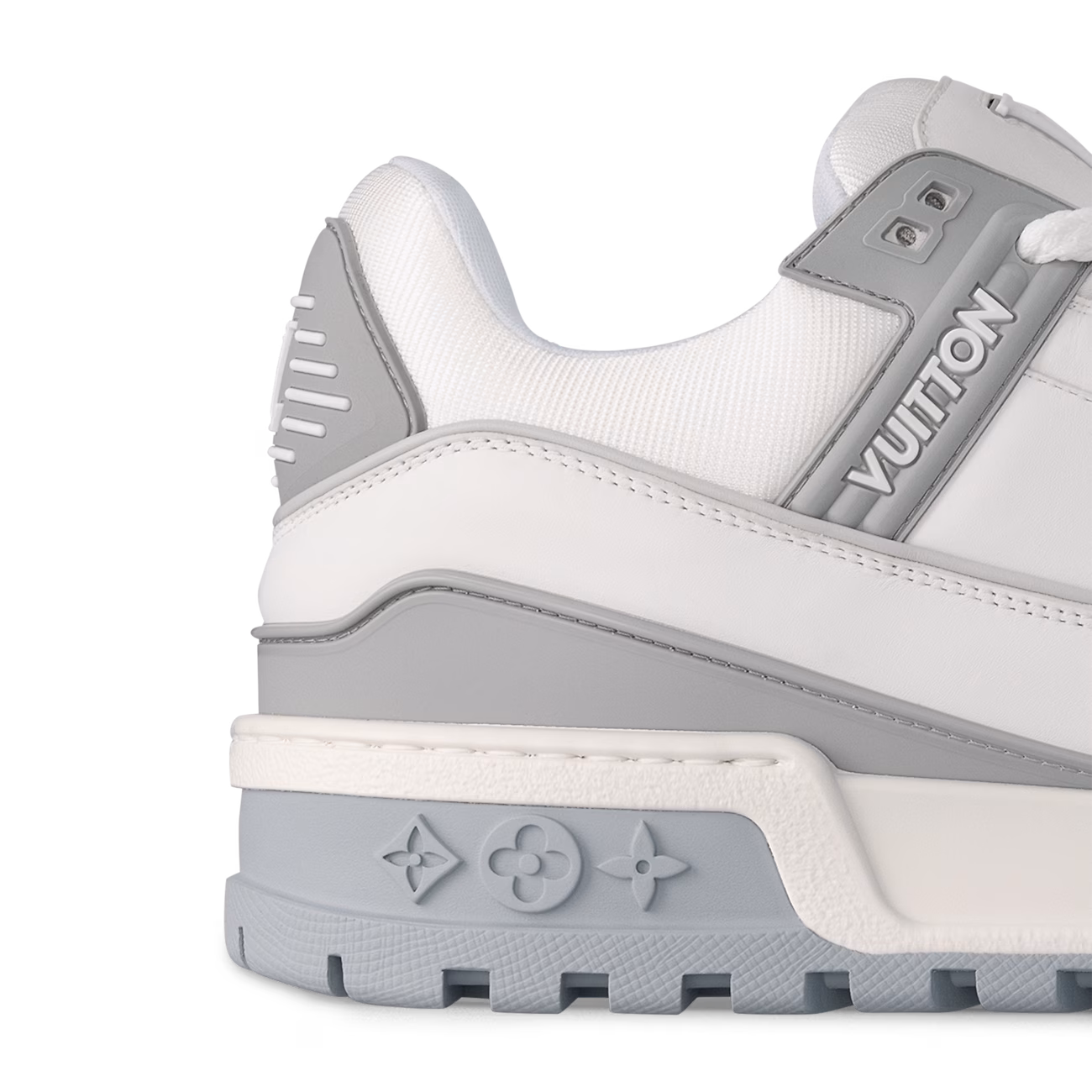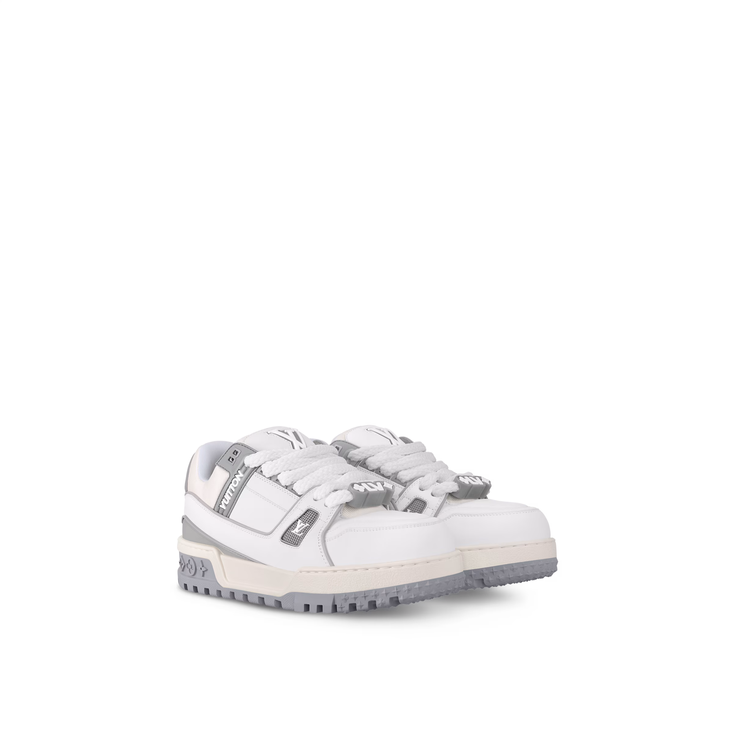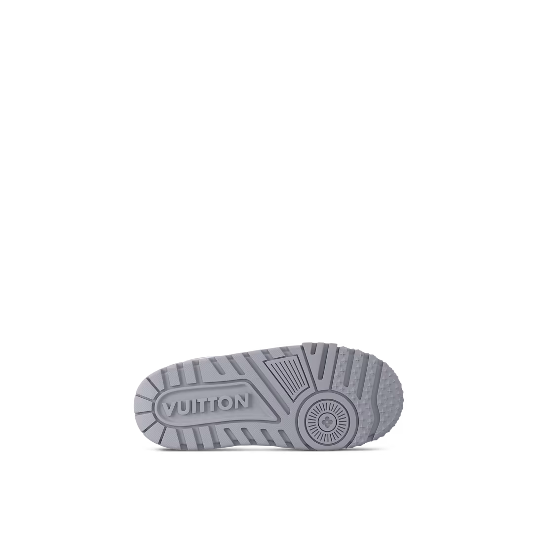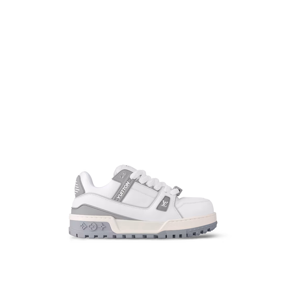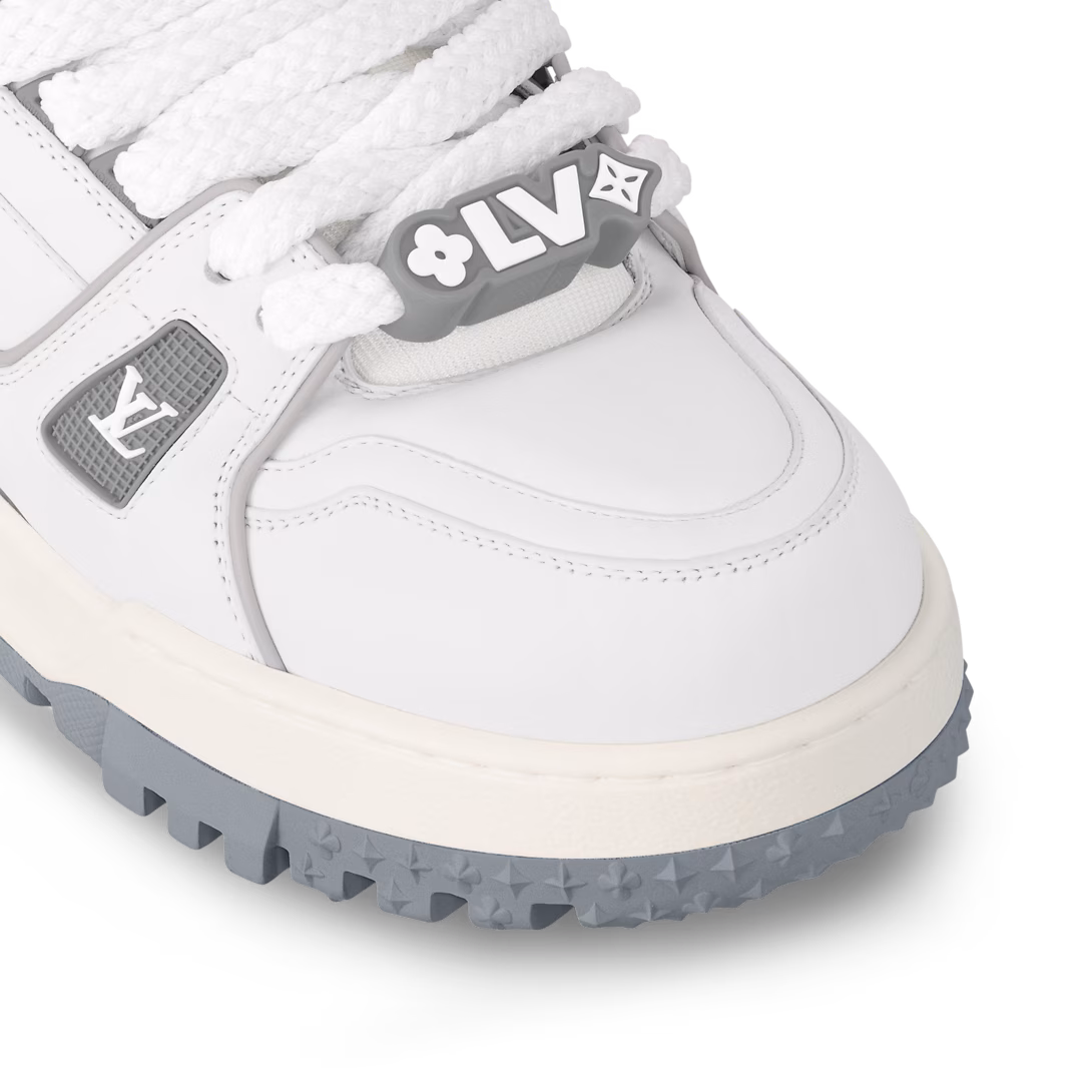 Now available for women, the LV Trainer Maxi sneaker is an oversized version of the LV Trainer sneaker originally designed by Virgil Abloh. Notable for its exaggerated, padded tongue and chunky outsole, this model comes in calf leather with rubber logos. It is finished with thick textile laces embellished with Louis Vuitton signature beads.